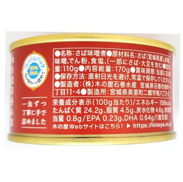 6缶セット 国産 秋 冬 サバ 味噌煮 1缶 固形量 110g 内容量 170g 木の屋 石巻水産